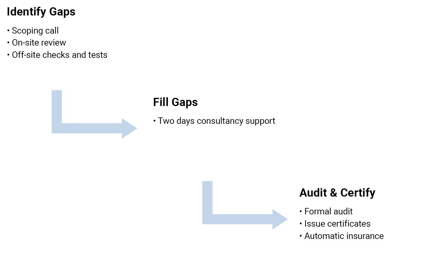 The two days of consultancy support is flexible and tailored to help you implement the roadmap in preparation for the audits.